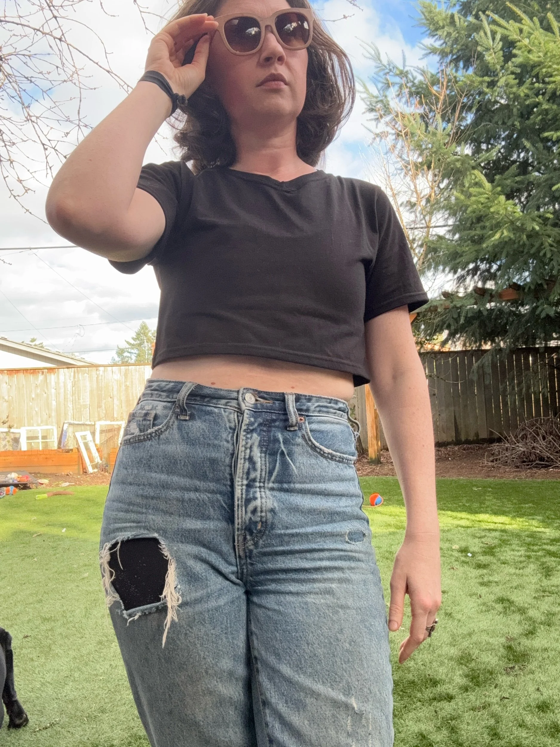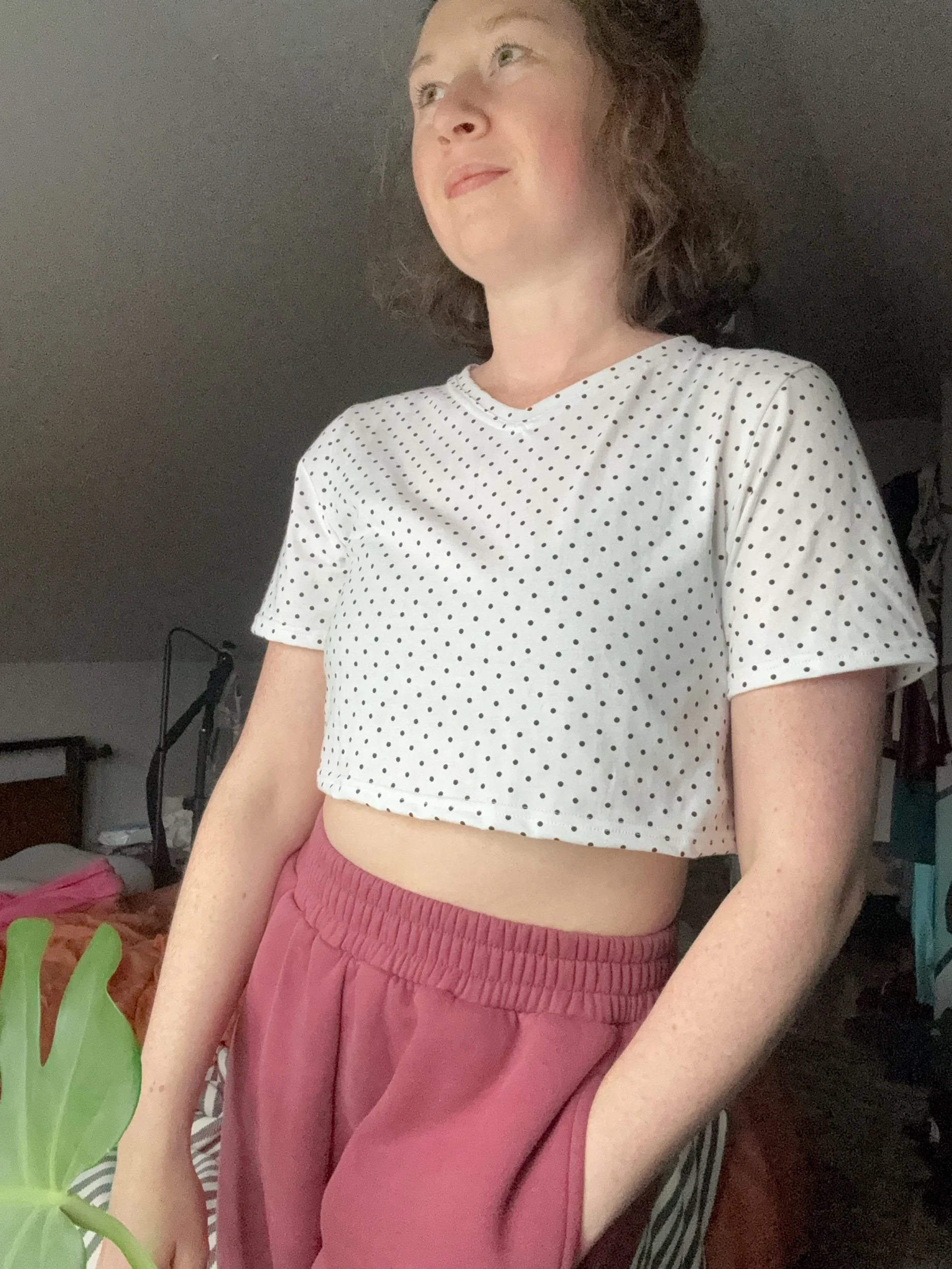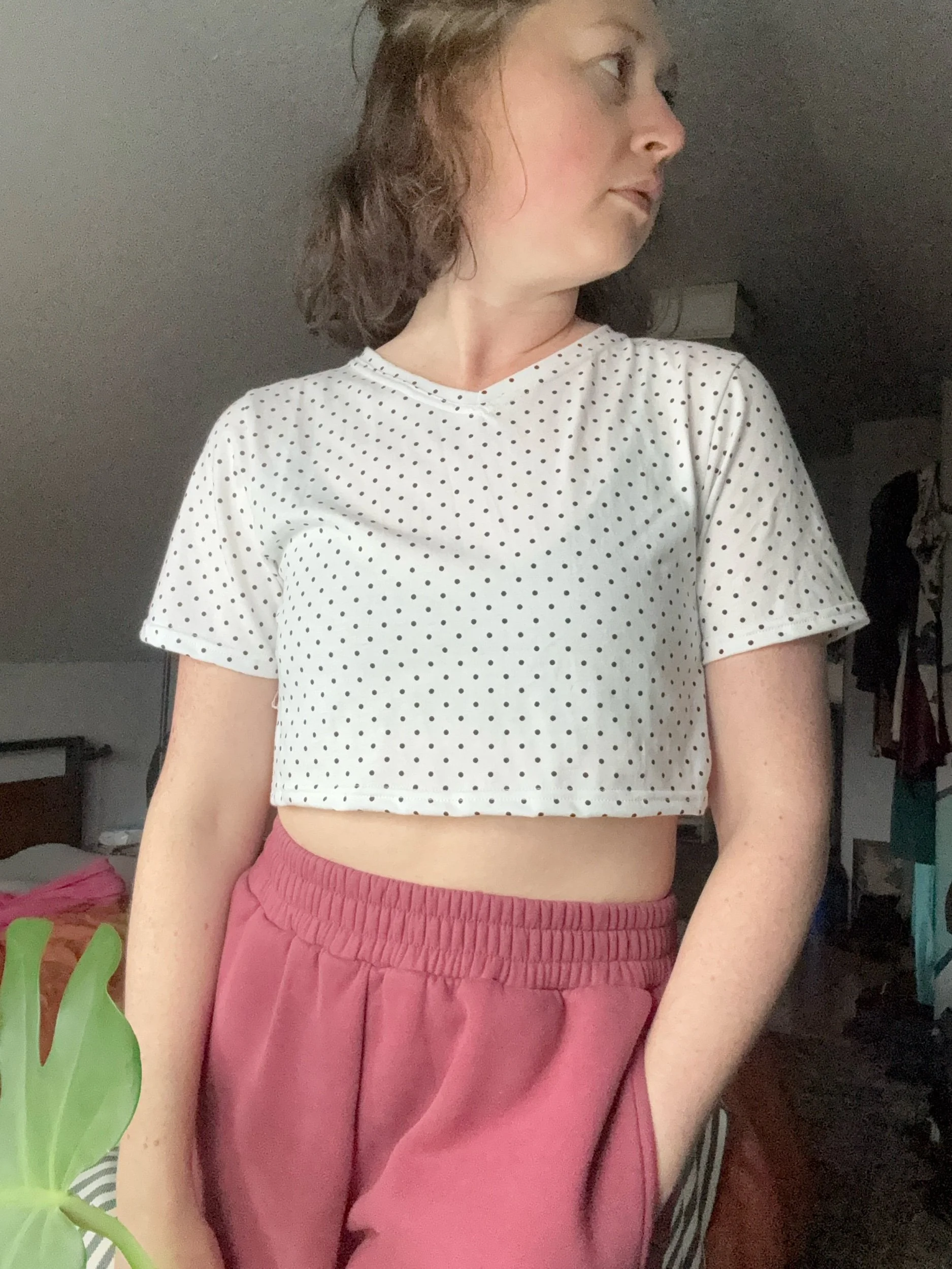 She’s just a cutie cropped tee! Featuring a V-neck and boxy fit this tee is effortlessly wearble and also available in full length soon! Available here in two nice cotton blend fabrics with a bit of stretch and completely opaque.